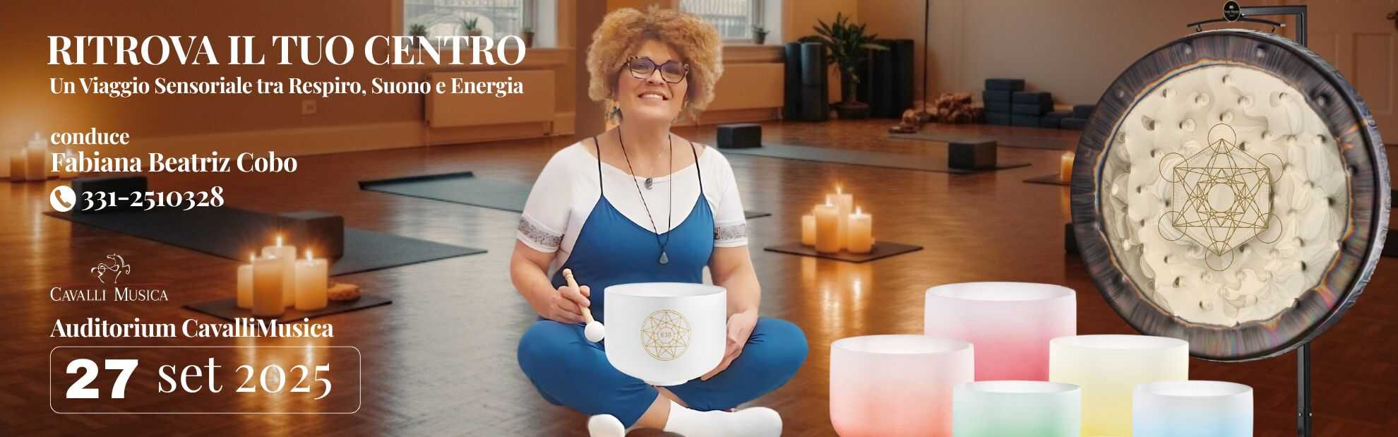 Ritrova il tuo equilibrio interiore in un'esperienza sensoriale unica. Lasciati avvolgere da un profondo viaggio tra respiro, suono ed energia nella suggestiva cornice dell'Auditorium Cavalli Musica.
